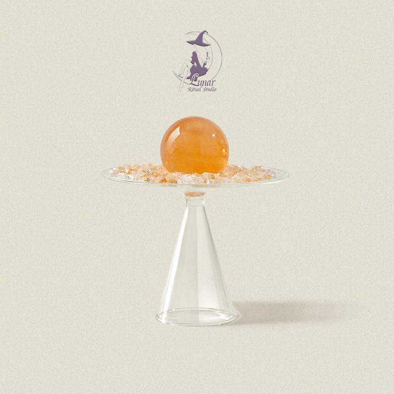 材質: 天然黃冰洲晶主石、能量碎石底座、金屬/木質托盤(請依實際材質填入)