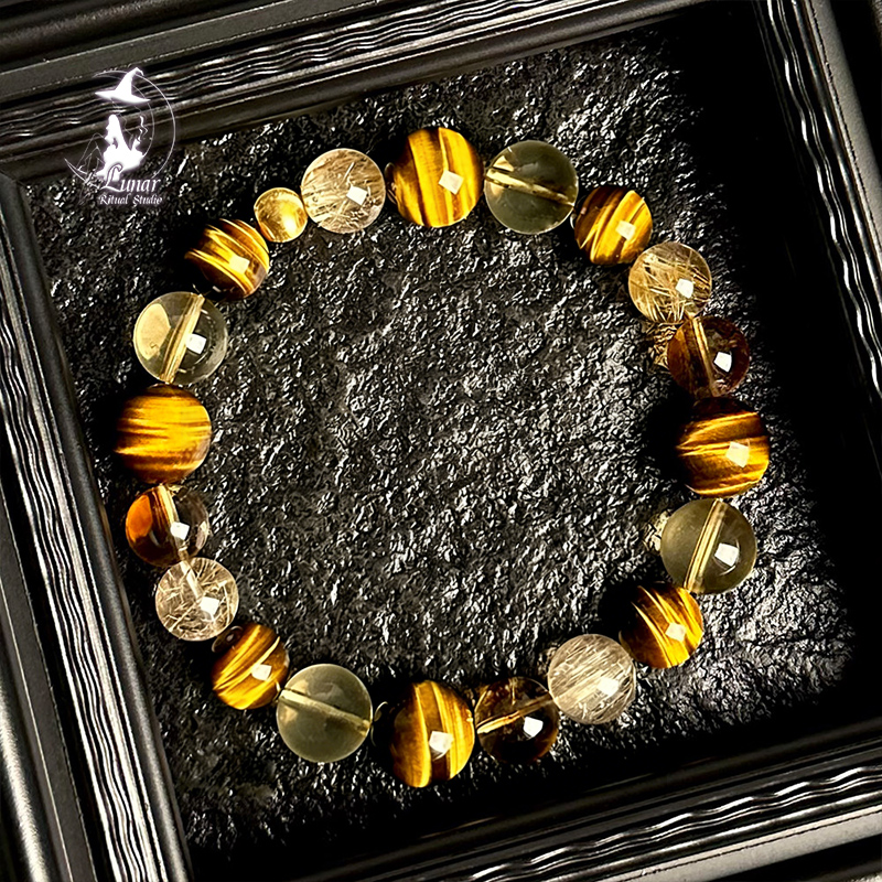 【喜土喜財】天然五行黃水晶虎眼石手串金髮晶招財手鍊生日送禮物