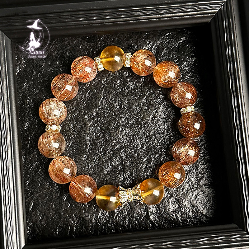 【財富之鑰】天然水晶黑金超七黃水晶手串女招財