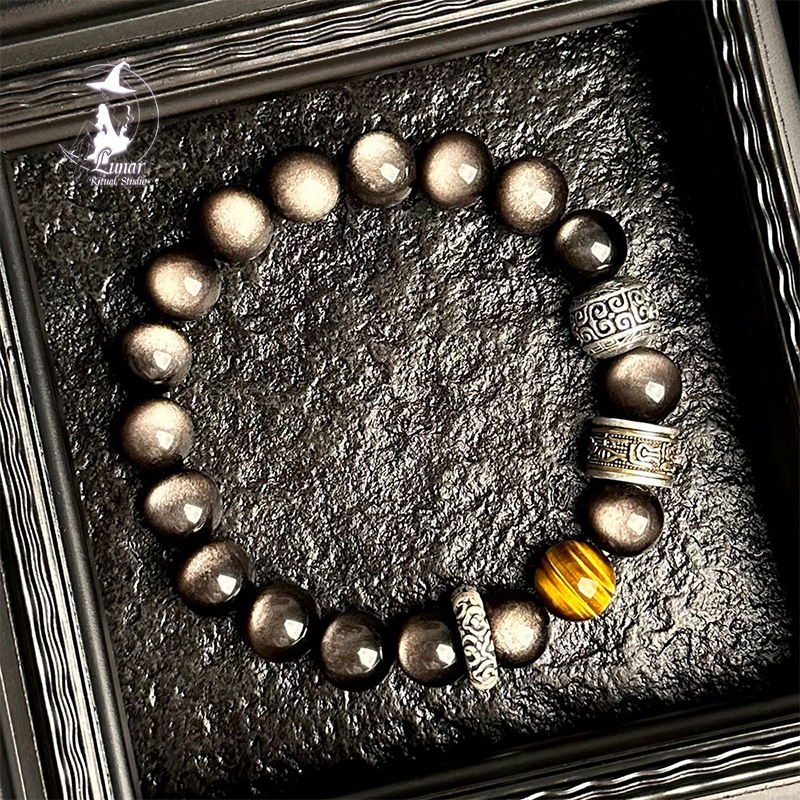 【黑悟空】天然水晶銀黑曜石虎眼石手串男生男友情侶手鍊生日禮物