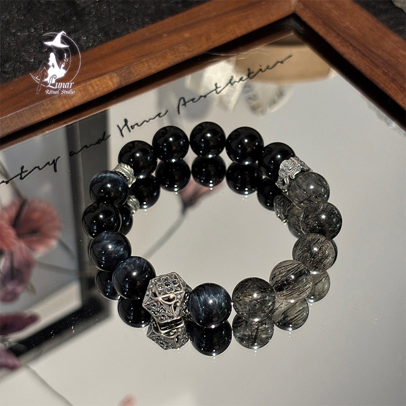黑曜石、黑碧璽、鈦晶組成最強守護陣。