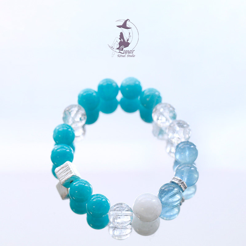 天然水晶手鏈莫三比克收藏級天河石巴西老礦海藍寶禮物