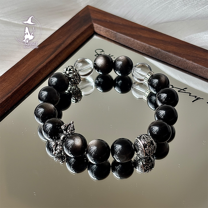 孤勇者金剛杵銀曜石白水晶男士能量水晶手串男生紀念日禮物