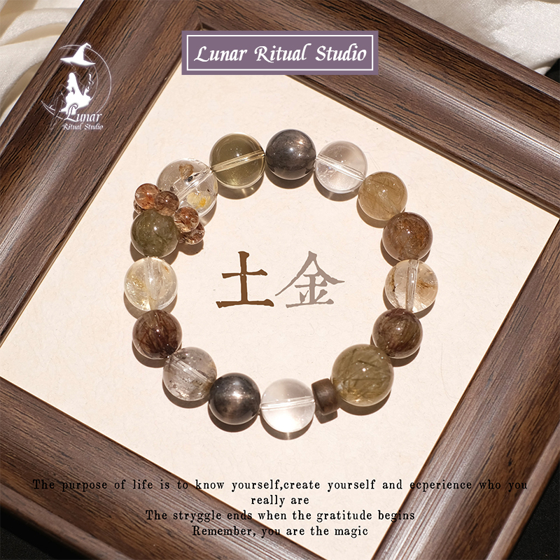 孤品超七閃靈骨幹彩髮晶多寶五行手串男女天然水晶