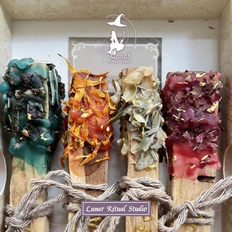 我們不僅僅是製作蠟燭,更是將宇宙能量編織進每一寸燭光之中。魔法粉、魔法草藥、天然植物精油、水晶、大豆蠟、蜜蠟⋯這些不僅是成分,更是承載能量的媒介。每一批蠟燭都經歷不只一次的神聖儀式加持,才能來到你的手中。