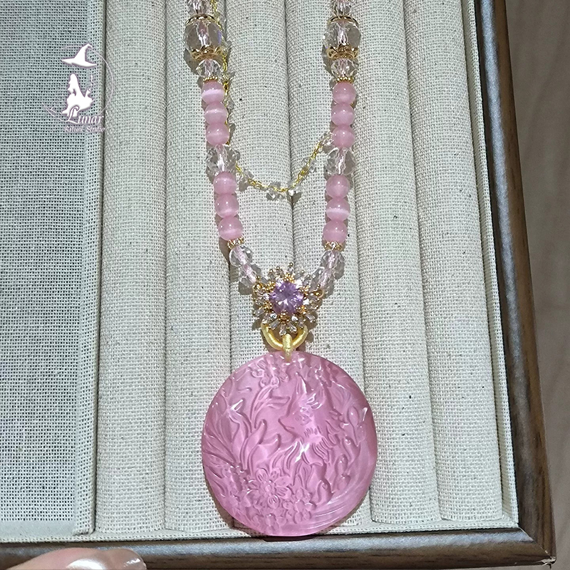 粉晶九尾狐狸🦊吊牌項鏈(可客製化)