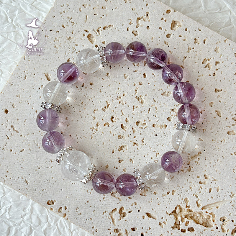 紫穩必勝巴西紫水晶白阿塞女水晶手串手鍊女生紀念日禮物