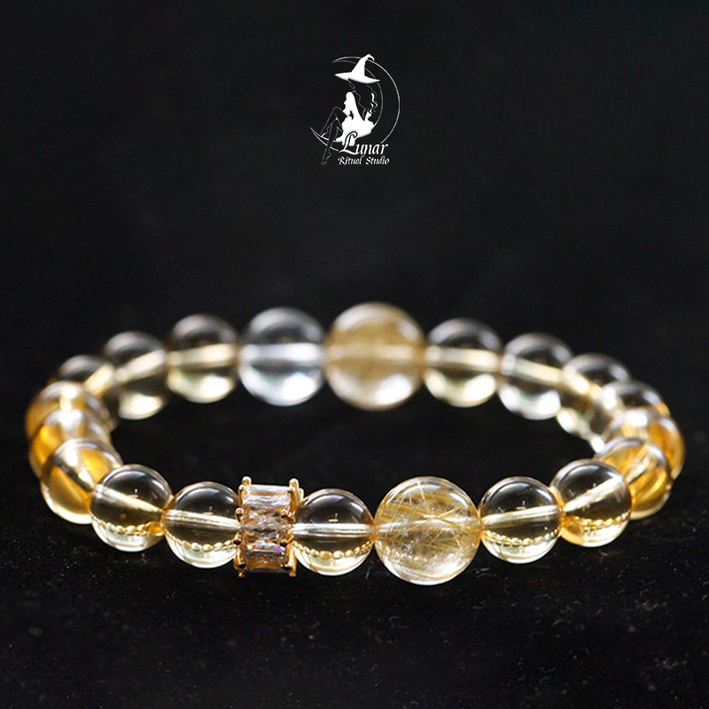 財富繆斯-天然金鈦晶黃水晶手鏈手串禮物