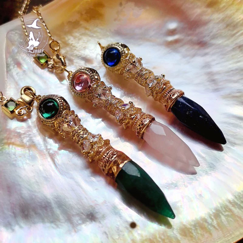 靈擺項鏈天然水晶粉水晶青金石綠玉石調頻復古宮廷風吊墜送教程女