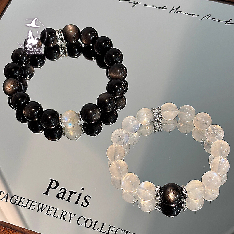 黑白配銀曜石藍月光紀念日禮物情侶手鍊手串紀念日禮物